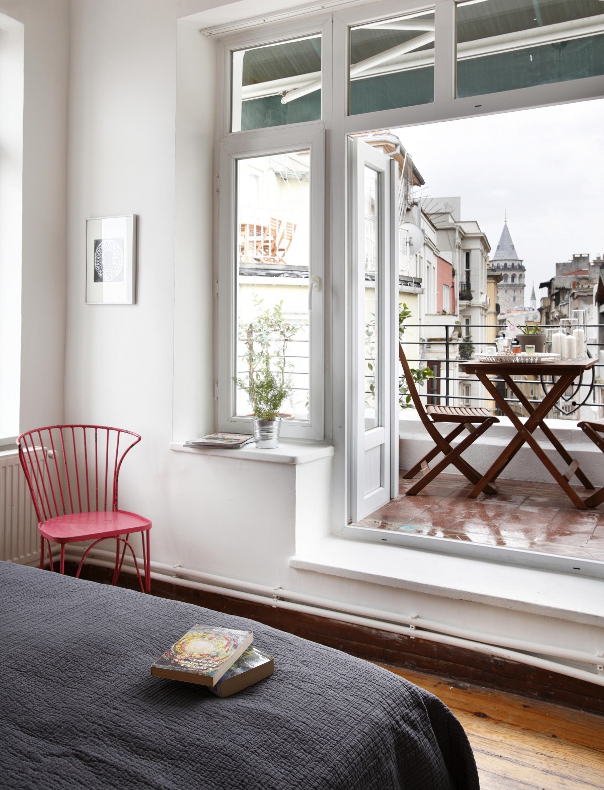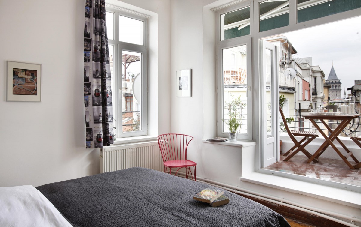 Want an even more up close and personal view? Head out to the flat’s two balconies, one, which covers the entire length of the apartment, and faces the Bosphorous, and the other which faces Serdar-I Ekrem Street and the Galata Tower.